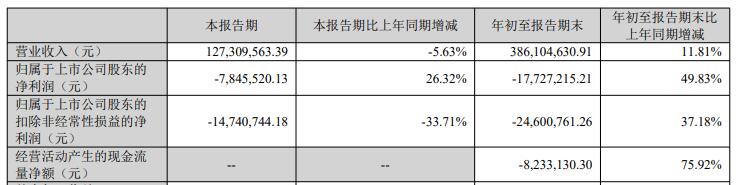 中国经济网北京11月27日电 国林科技(300786.SZ)近日披露2025年第三季度报告。前三季度,公司实现营业收入3.86亿元,同比增长11.81%;归属于上市公司股东的净利润-1772.72万元,上年同期为-3533.33万元;归属于上市公司股东的扣除非经常性损益的净利润为-2460.08万元,去年同期为-3916.02万元;经营活动产生的现金流量净额为-823.31万元,上年同期为-34.1838万元。 2024年国林科技实现营业收入4.93亿元,同比增长酶活性为23.33%;归属于上市公司股东的净利润为-4995.89万元,上年同期为-2913.73万元;扣除非经常性损益后股东净利润为-5483.51万元,上年同期为-2934.41万元;经营活动产生的现金流量净额为-3022.61万元,上年同期为-1688.71万元。国林科技于2019年7月23日在深圳证券交易所挂牌上市,公司向社会公开发行普通股1335万股(一股),发行价格为26.02元/股。公司本次发行股票募集资金总额为34,736.7万元。扣除发行费用3,886.89万元后,募集资金净额为30,849.8万元。国林科技的保荐人(主承销商)为华福证券股份有限公司,保荐代表人为黄磊、刘淑丽。承保g赞助费2631.07万元。 2021年8月23日,国林科技发布了关于具体标的的股票上市公告。显示,本次发行募集资金总额为359,999,983.36元,承销保荐费、律师费、验资费、登记费等发行费用为9,261,123.22元(不含税)。扣除发行费用(不含税)后募集资金净额为350,738,860.14元。经测算,国林科技两次存入的资金总额为7.07亿元。